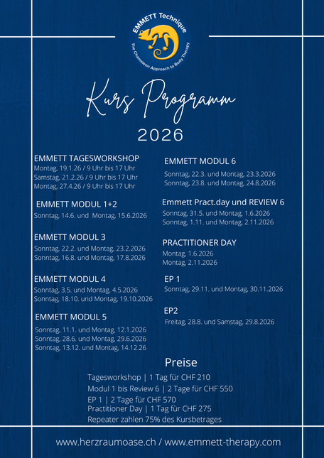 Du bist an einem Modul interessiert? Dann melde dich zusätzlich offiziell über die Webseite www.emmett-therapy.com an.